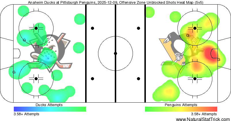 • Who: Penguins (14-7-6) vs. Ducks (18-10-1) • What: NHL regular season, Game 28 • When: 7:08 p.m. • Where: PPG Paints Arena • Goaltenders: Arturs Silovs (4-4-4, .898 SV%) vs. Ville Husso (4-2, .875 SV%) • TV: SportsNet Pittsburgh • Stream: SNP360 (local), ESPN+ (out-of-market) • Radio: Penguins Radio Network • Boxscore: NHL.com • Medianotes: Penguins | Ducks