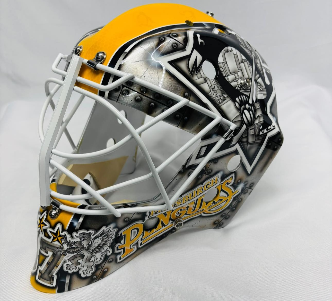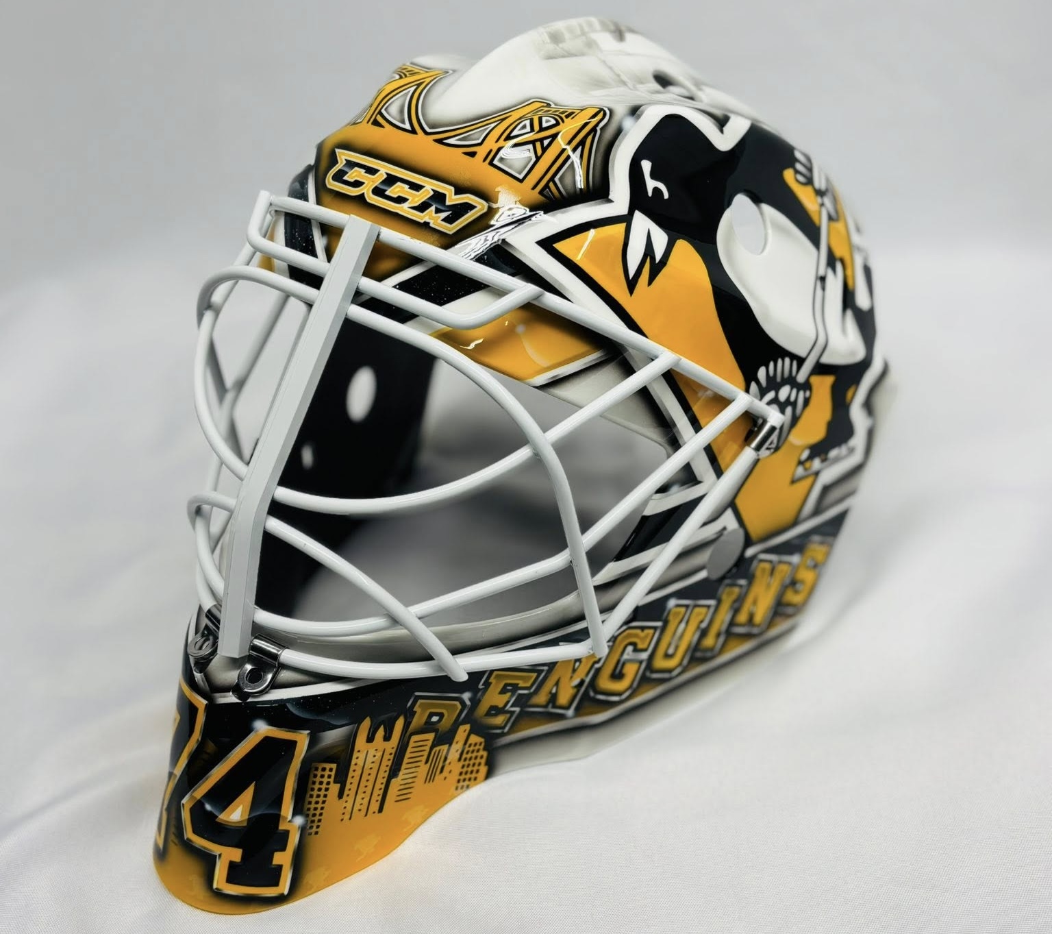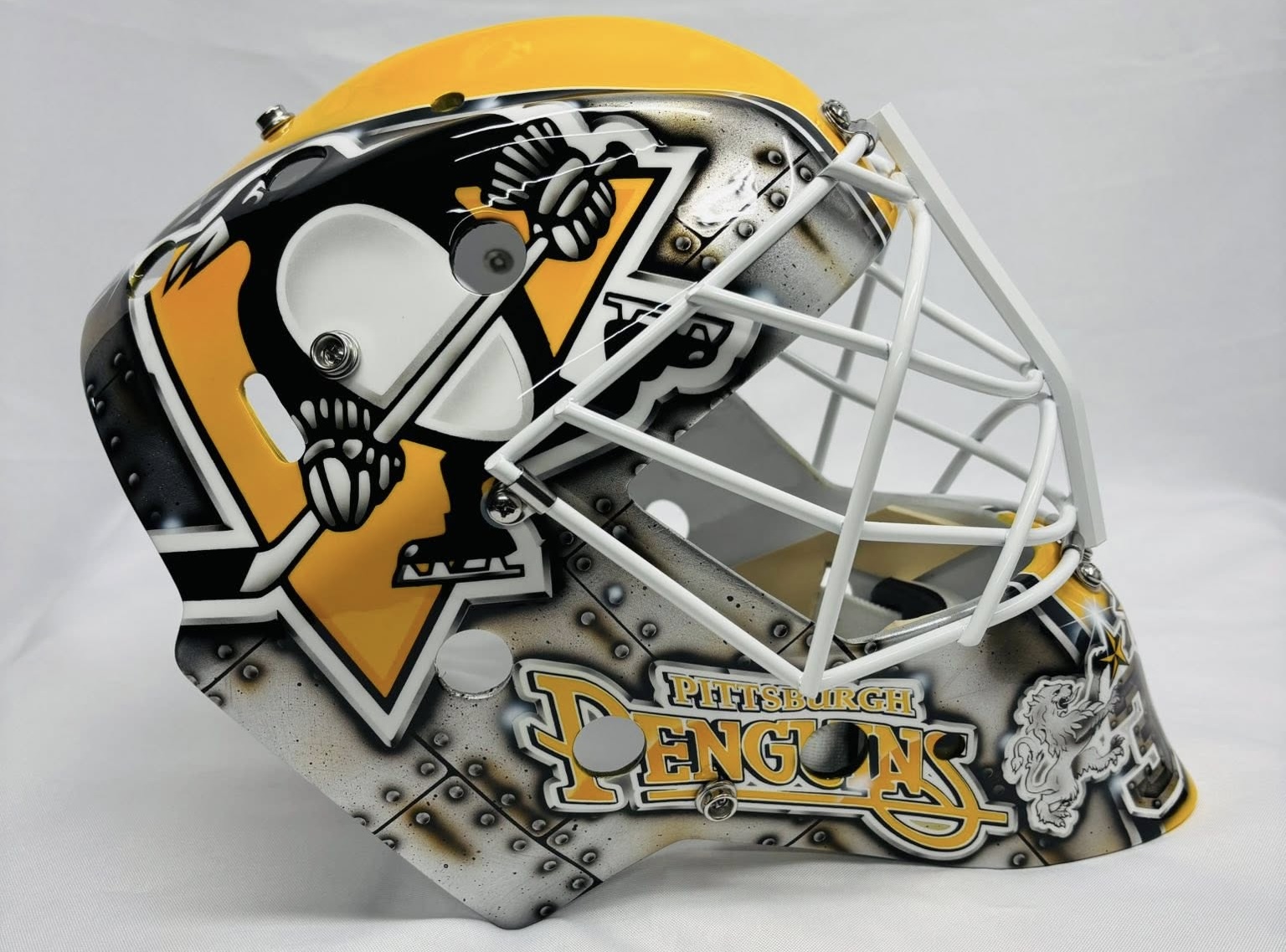 The mask was painted by Scott Williams in nearby Kittanning, Pa., the same artist who also painted the masks for Arturs Silovs and Penguins practice goaltender Mike Chiasson this season. Most goaltenders around the league use the same small group of painters for their masks, and so the masks for Silovs and Skinner were the first NHL team masks Williams has ever done. Pretty cool for those guys to opt for a local artist over the big names.