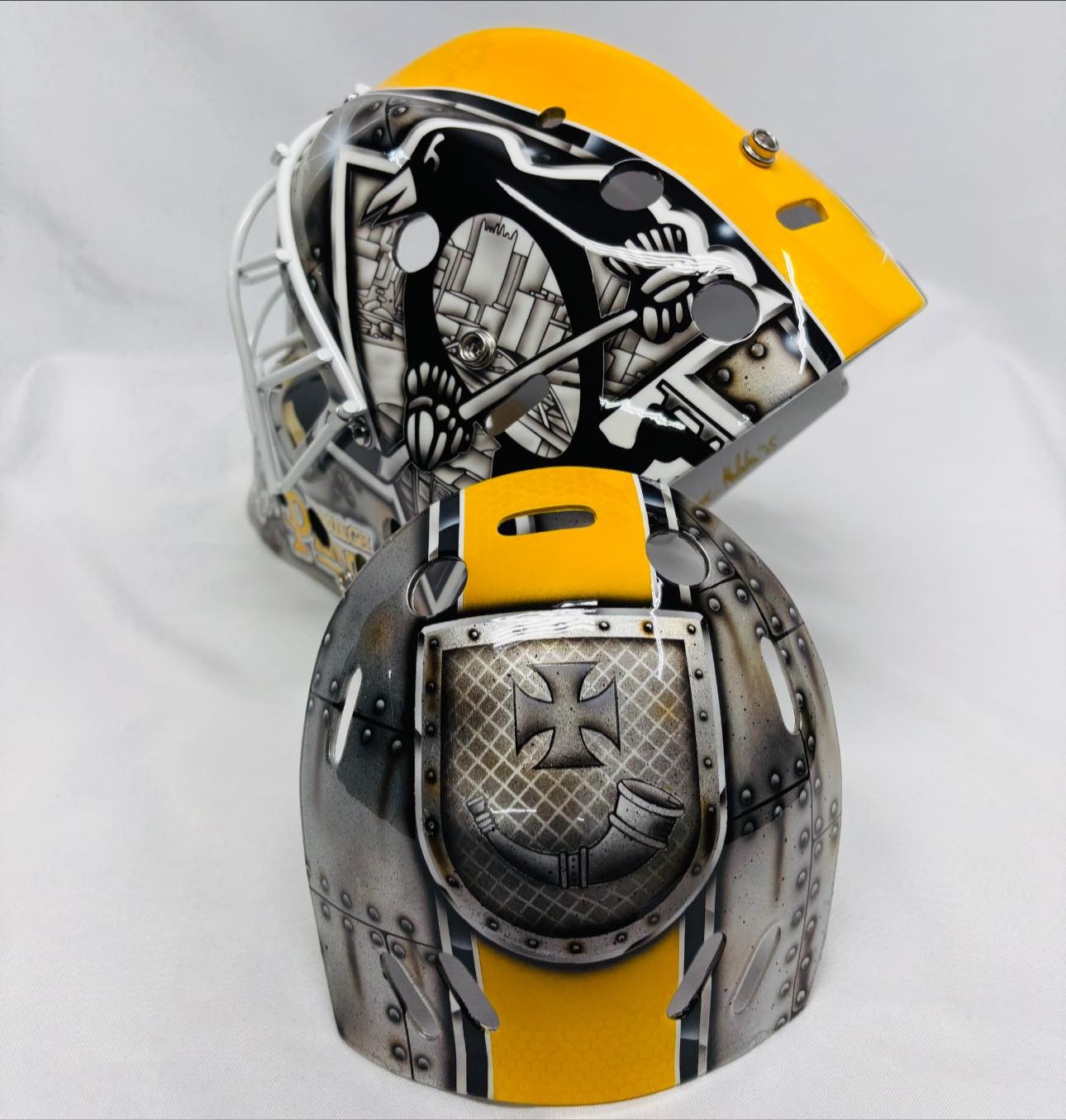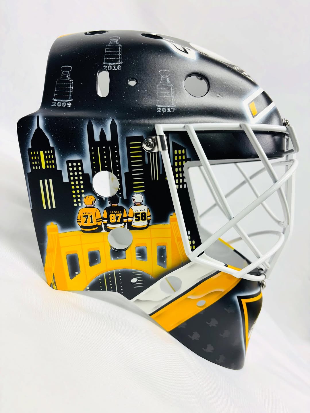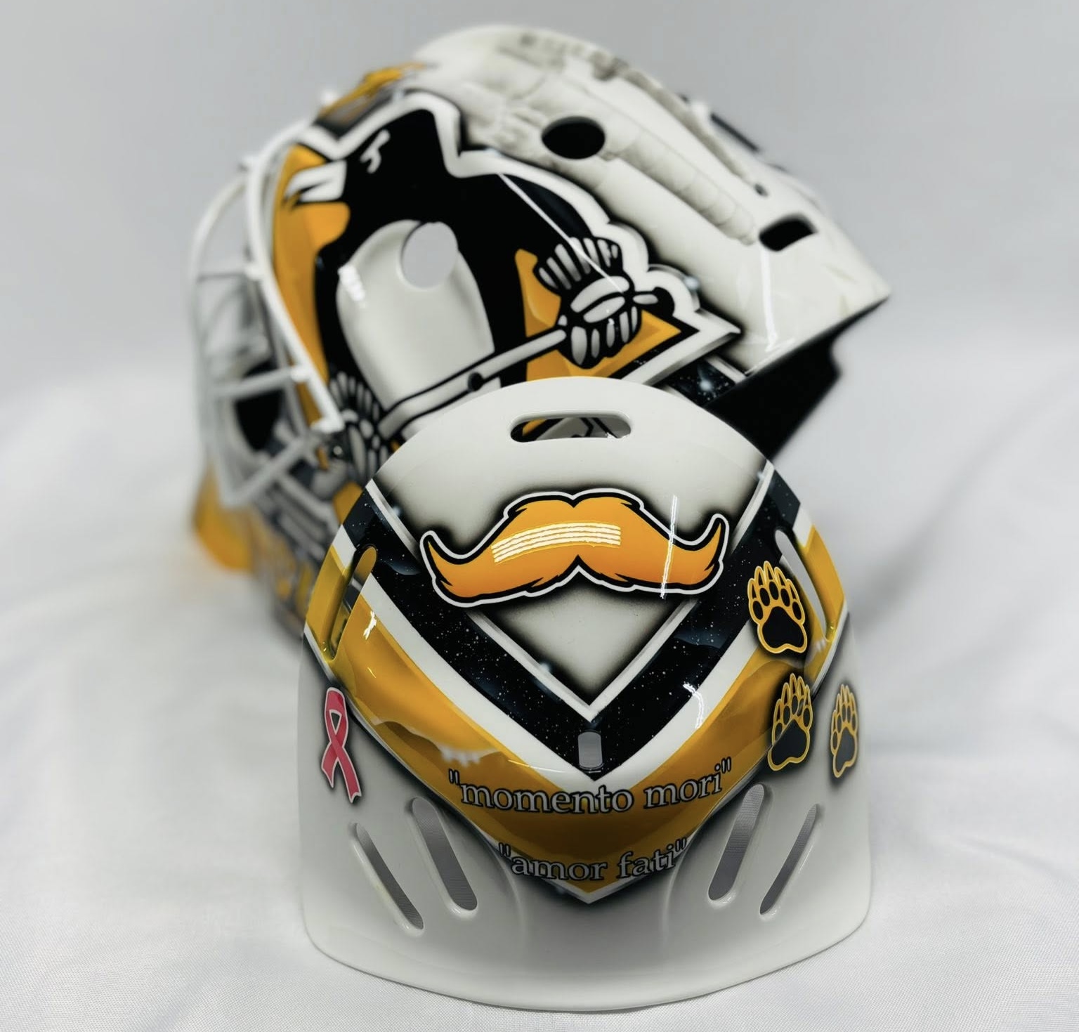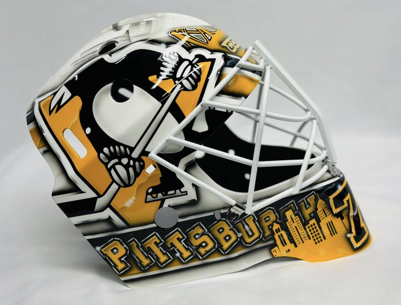 The mask was painted by Scott Williams in nearby Kittanning, Pa., the same artist who also painted the masks for Arturs Silovs and Penguins practice goaltender Mike Chiasson this season. Most goaltenders around the league use the same small group of painters for their masks, and so the masks for Silovs and Skinner were the first NHL team masks Williams has ever done. Pretty cool for those guys to opt for a local artist over the big names.