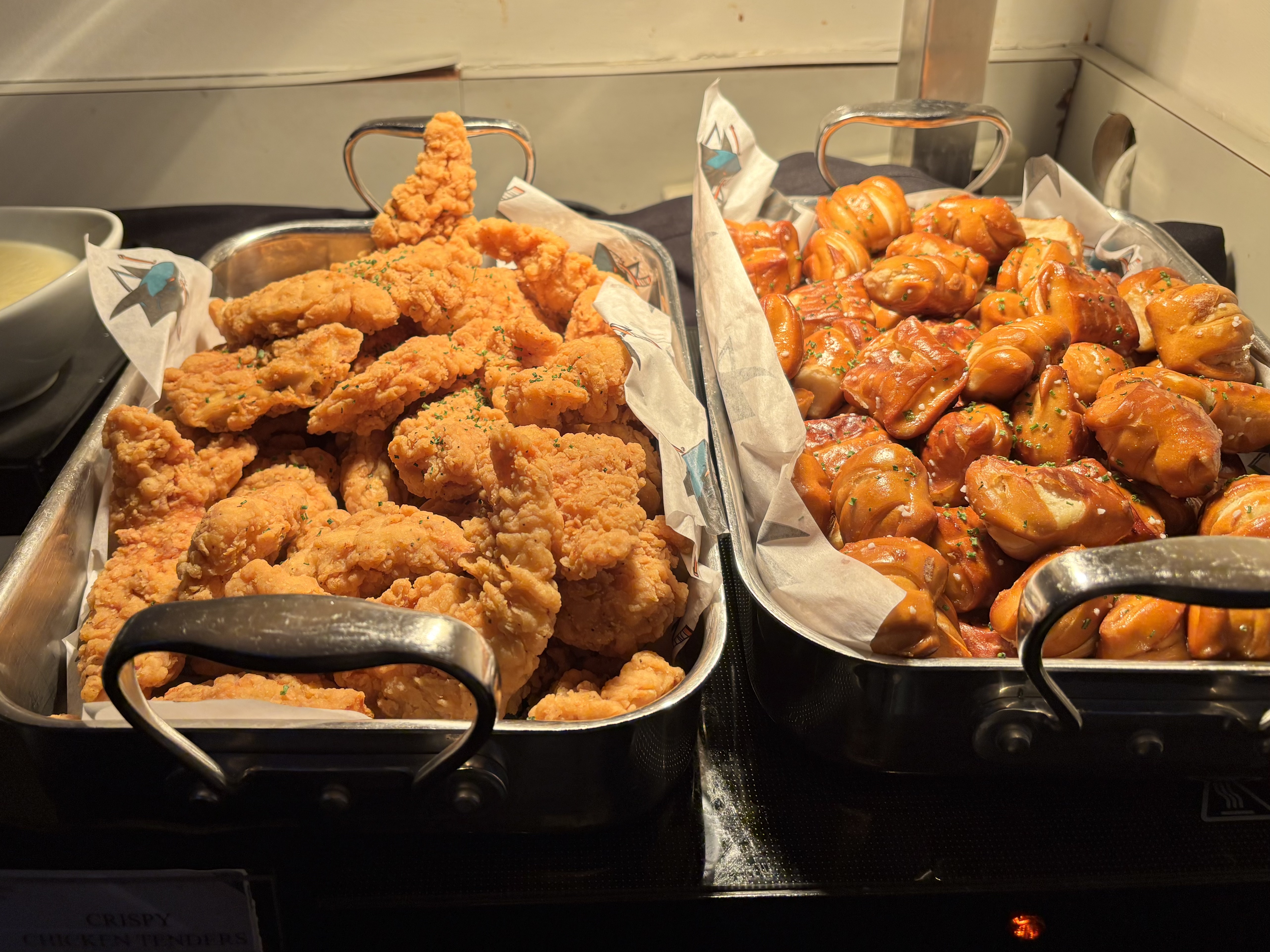 Strong showing from the SAP Center here in the snack department. In addition to the usual popcorn, chips and trail mix ... we have chicken tenders, little soft pretzel bites and mini cheesecakes.