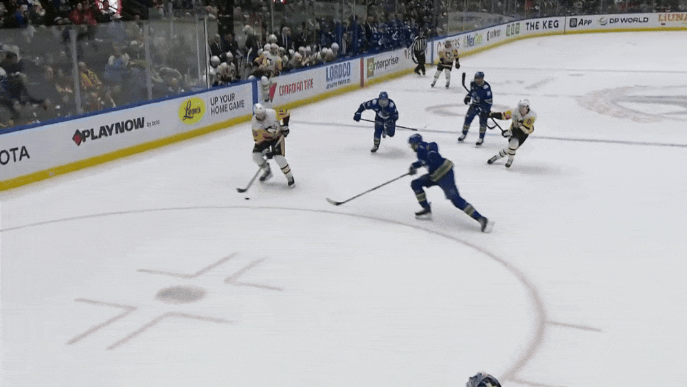 Kindel couldn't have picked a better time to break out of the slump. Playing about a 40-minute drive from his hometown of Coquitlam, British Columbia, Kindel had around 150 friends and family in attendance for the game, with those closest to him in a suite of their own at one end of the ice. Kindel scored not one, but two goals in front of that suite in the Penguins' 3-2 win over the Canucks.