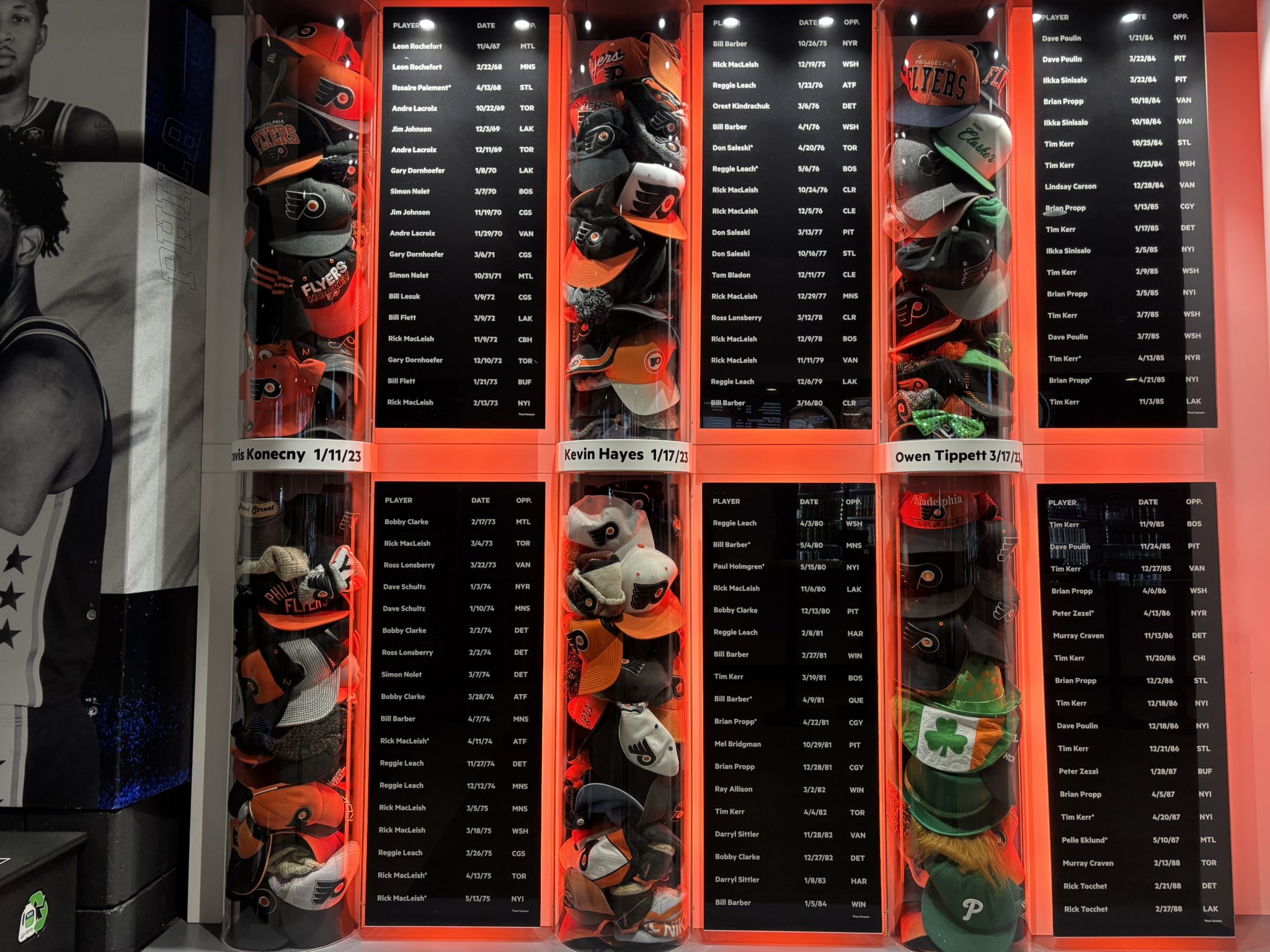 They've got hats from a Kevin Hayes hat trick on the concourse here: