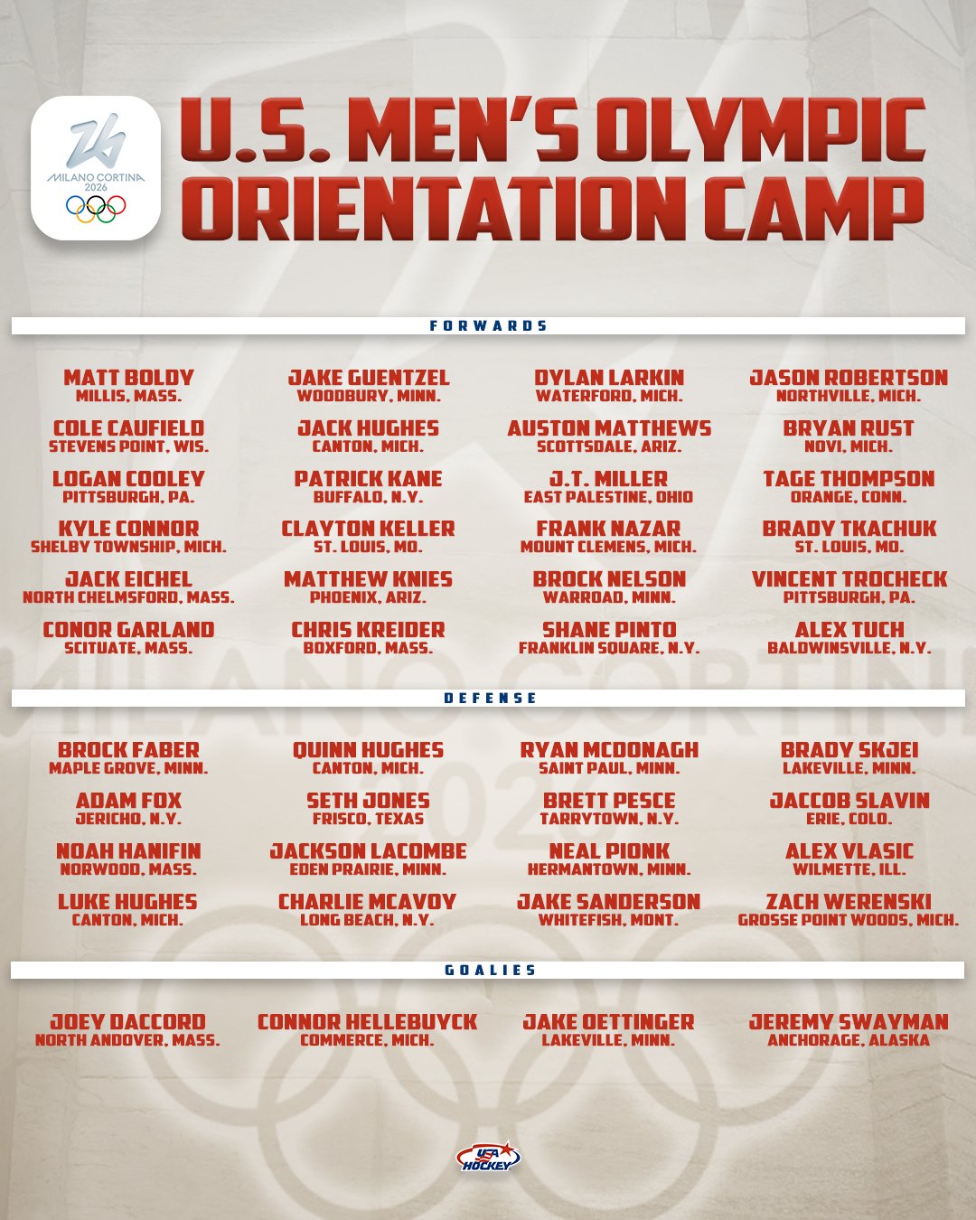 The camp, according to a USA Hockey release, is “largely an administrative and team-building event and includes no formal on-ice activity or public component.”
