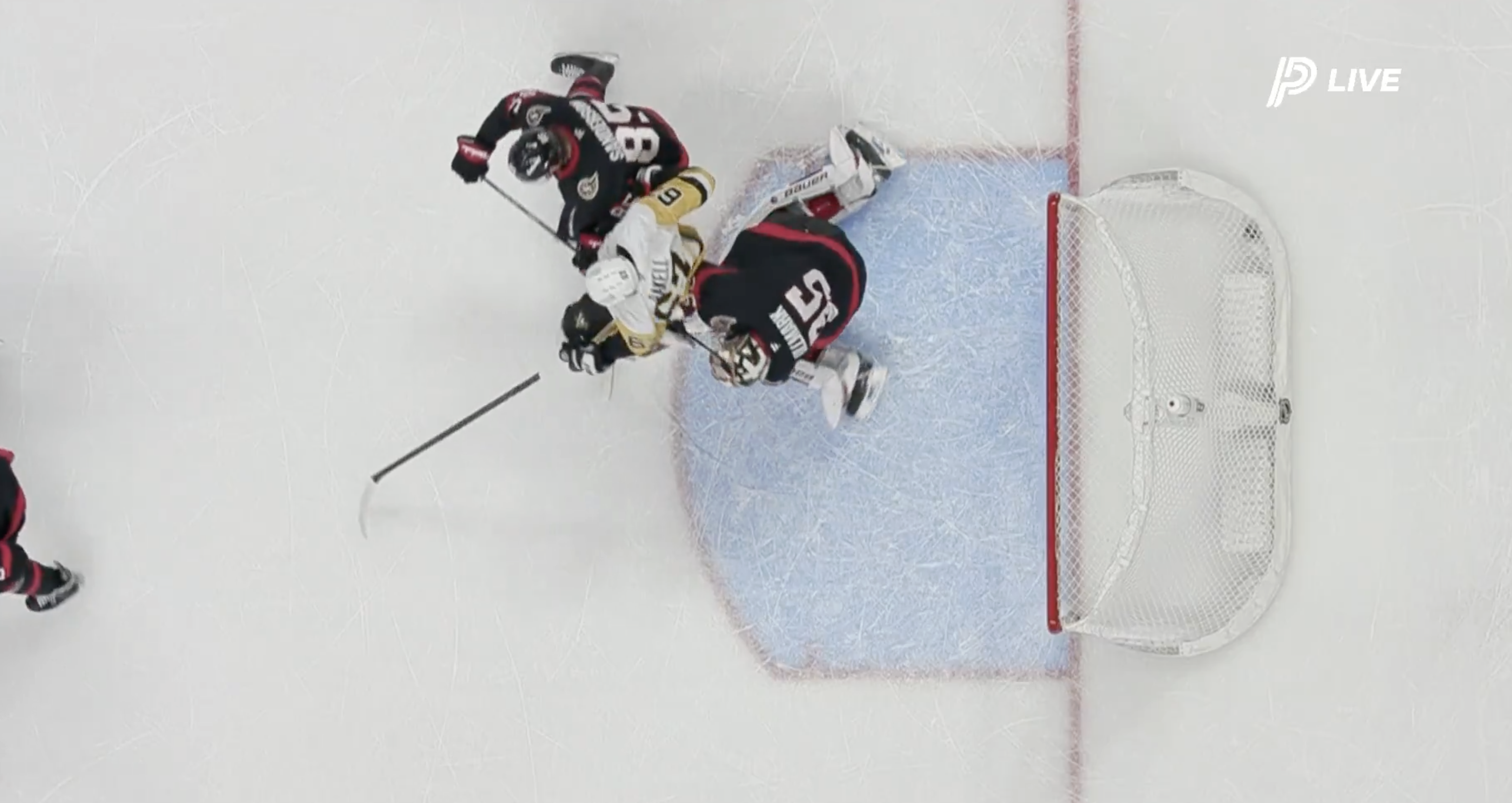 • Nice sprawling save from Arturs Silovs. He's been fine, really. Bad penalty call on him gave Ottawa that power play, and that really wasn't a soft goal he gave up. That was on Kris Letang defending more than anything else.