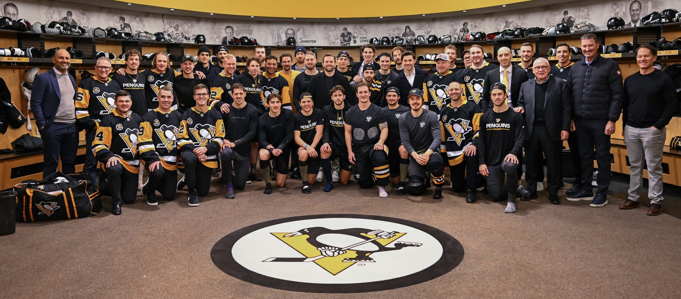 Lemieux attended the Penguins' 6-5 victory over the Rangers today, having participated in much of the 2016 Stanley Cup champions' reunion, as he and Ron Burkle were principal owners of the team at that time. He also accompanied those former players into the locker room after the game, where all involved gathered for a combo team photo: