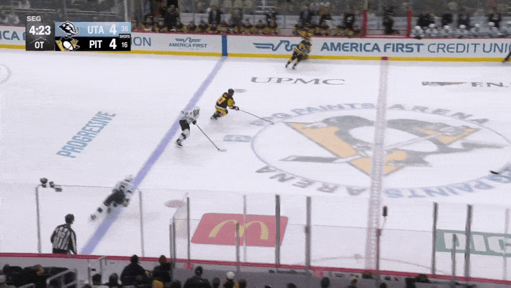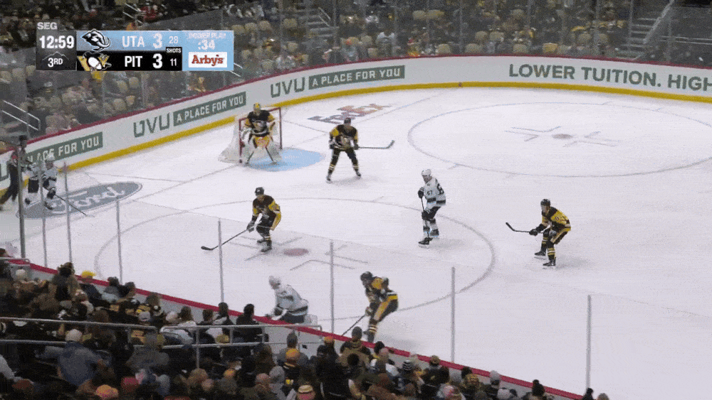 ... that being the Penguins' third flat-out phenomenal failure out of four games so far on this hellish homestand, this time throwing away a three-goal, third-period lead toward a 5-4 overtime loss to the Mammoth today at PPG Paints Arena. And this after allowing the Ducks to tie with a tenth of a tick on the clock, then setting fire to what should've been a four-goal rout of the Sharks.