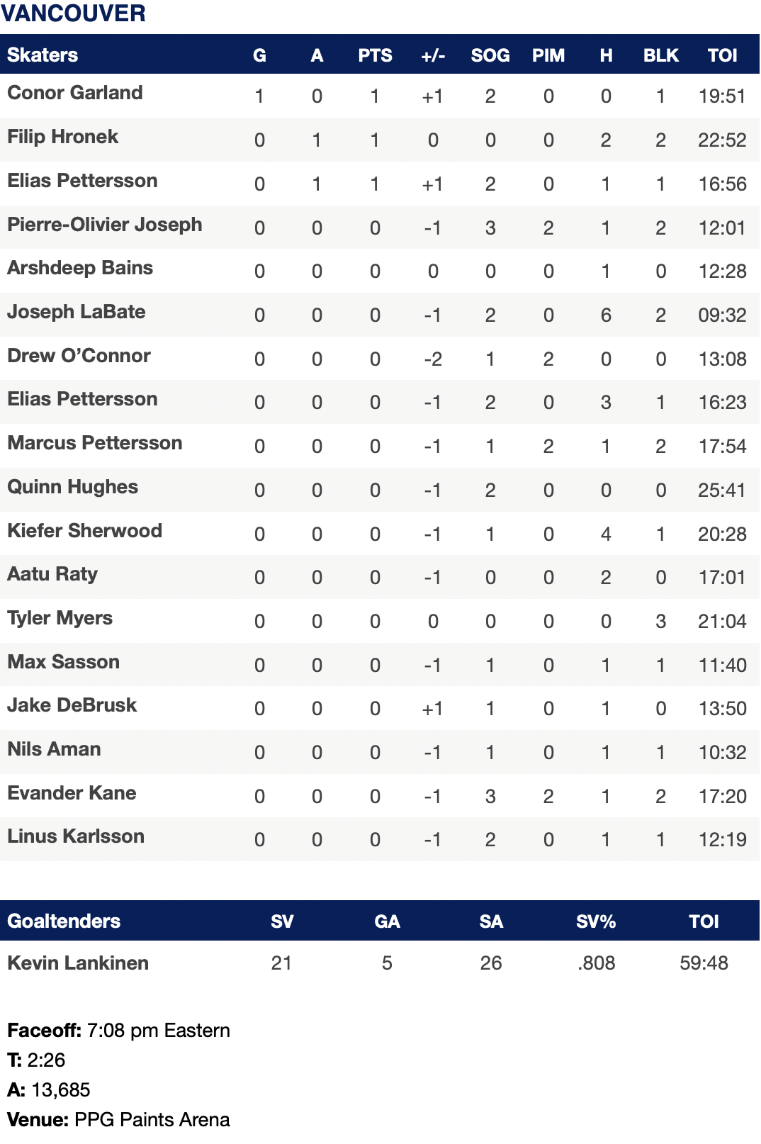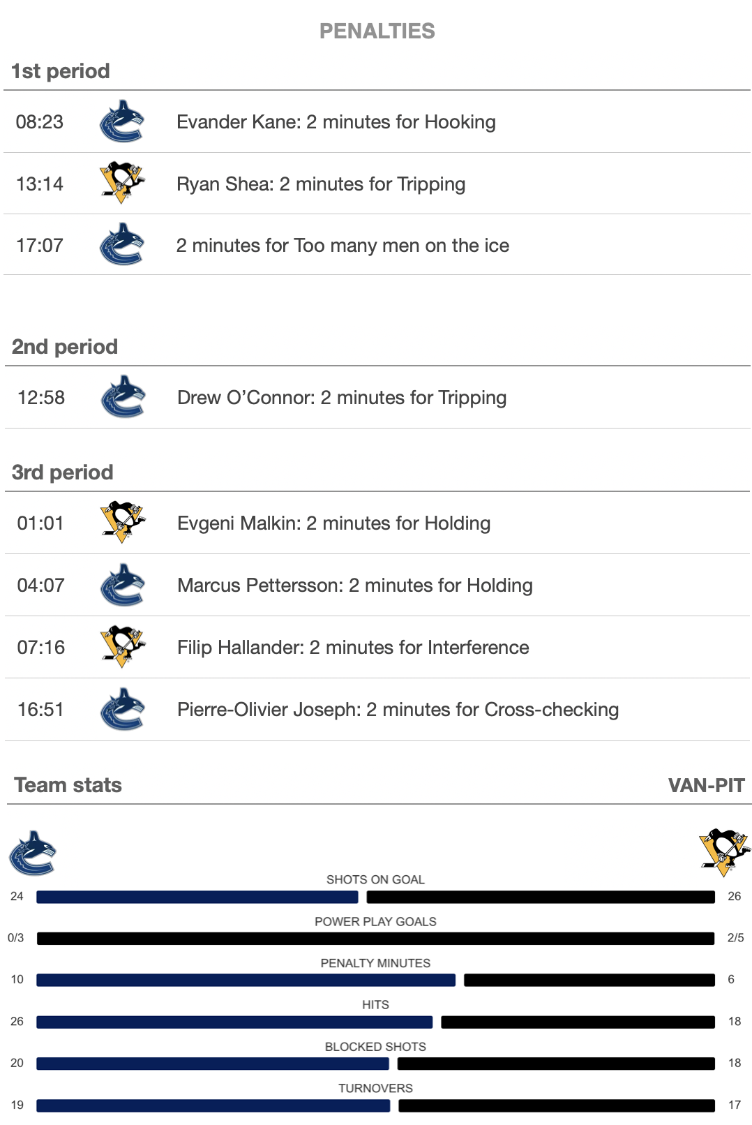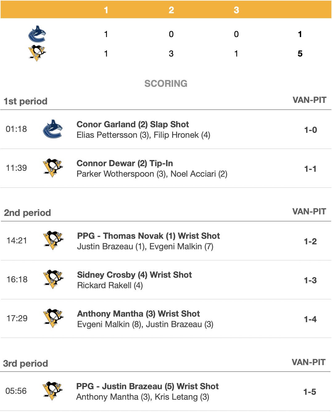Everything everyone could want on the Penguins' 5-1 victory over the Canucks tonight at PPG Paints Arena, beginning with all that Jose Negron and I have from here: