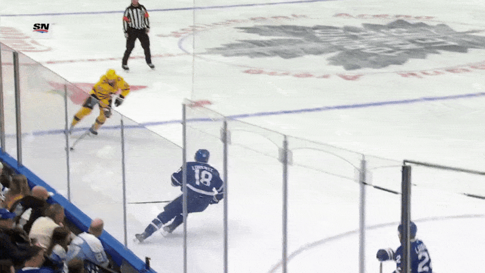 Yes, Lorentz did score on the breakaway, even after Skinner saved the first two of three total shots on one breakaway, putting the Maple Leafs up, 3-1: