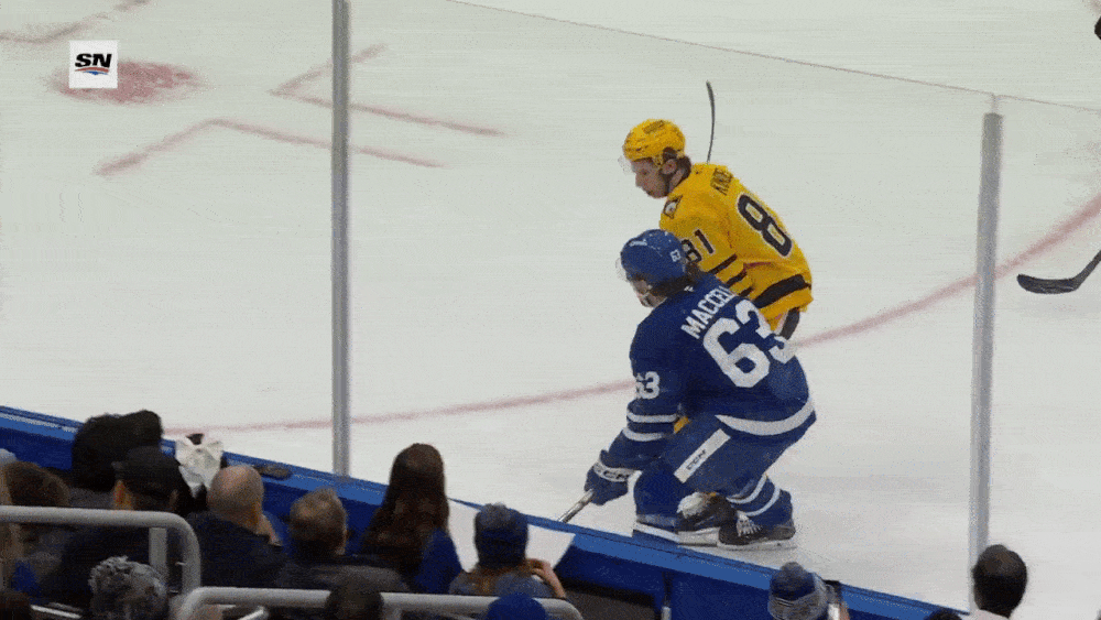 While Bryan Rust answered just 44 seconds later, the Maple Leafs recaptured the lead on a wonky play in which Parker Wotherspoon tried to bat a puck from Matias Maccelli to the wall, only for it to ricochet off his stick and slide under Skinner's pad: