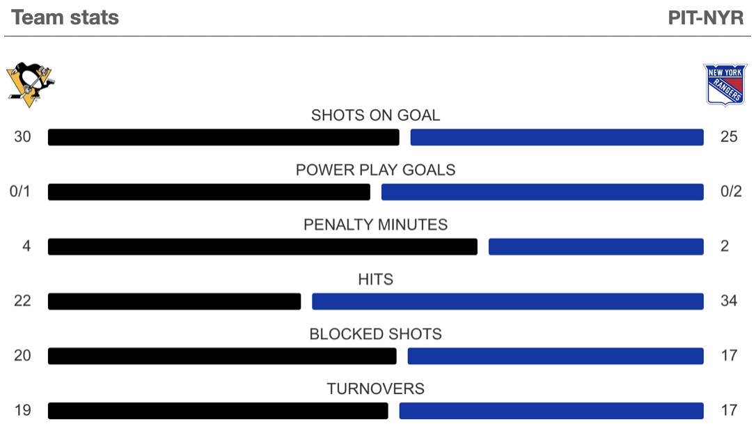 Everything everyone could want on the Penguins' 3-0 victory over the Rangers here at Madison Square Garden, beginning with all that Taylor Haase and I have from here: