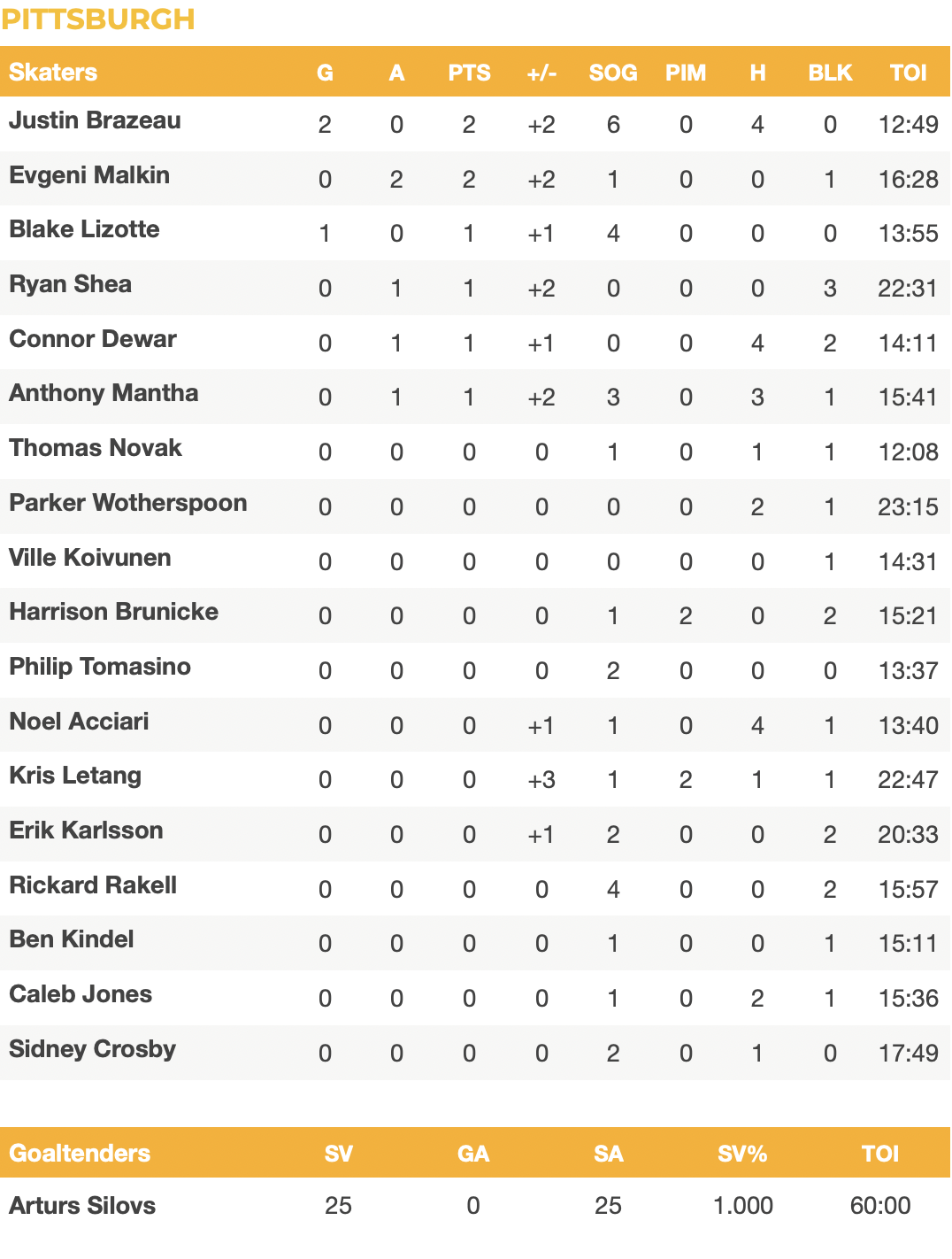 1. Arturs Silovs, Penguins G2. Justin Brazeau, Penguins RW3. Igor Shesterkin, Rangers G