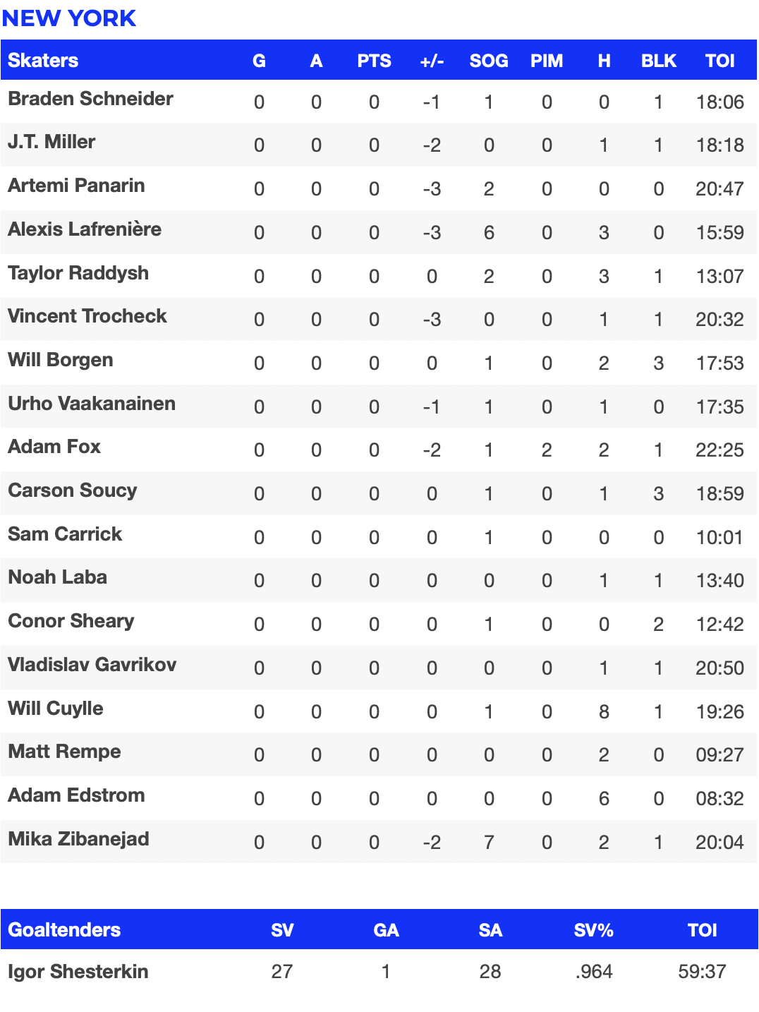 3. Igor Shesterkin, Rangers G