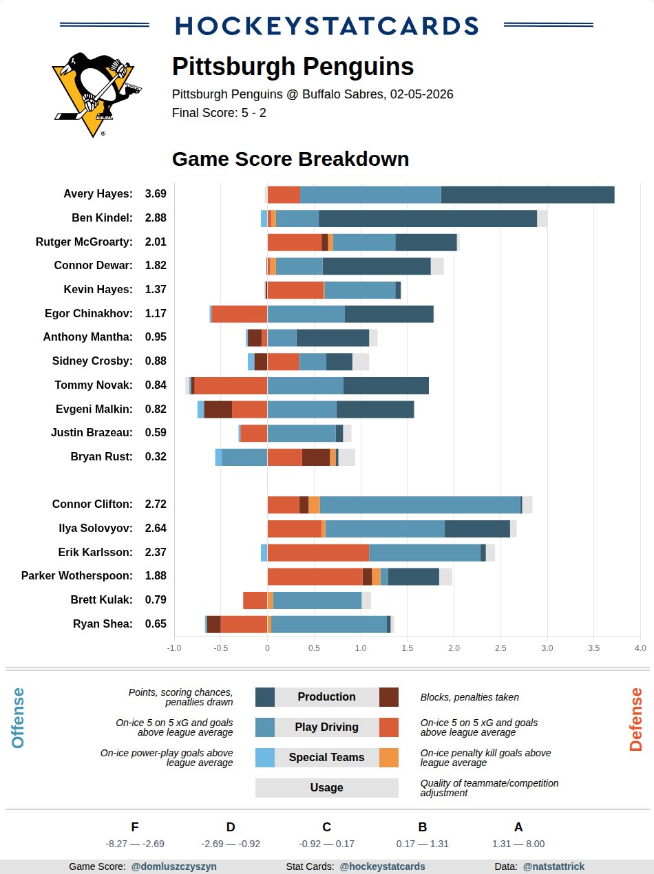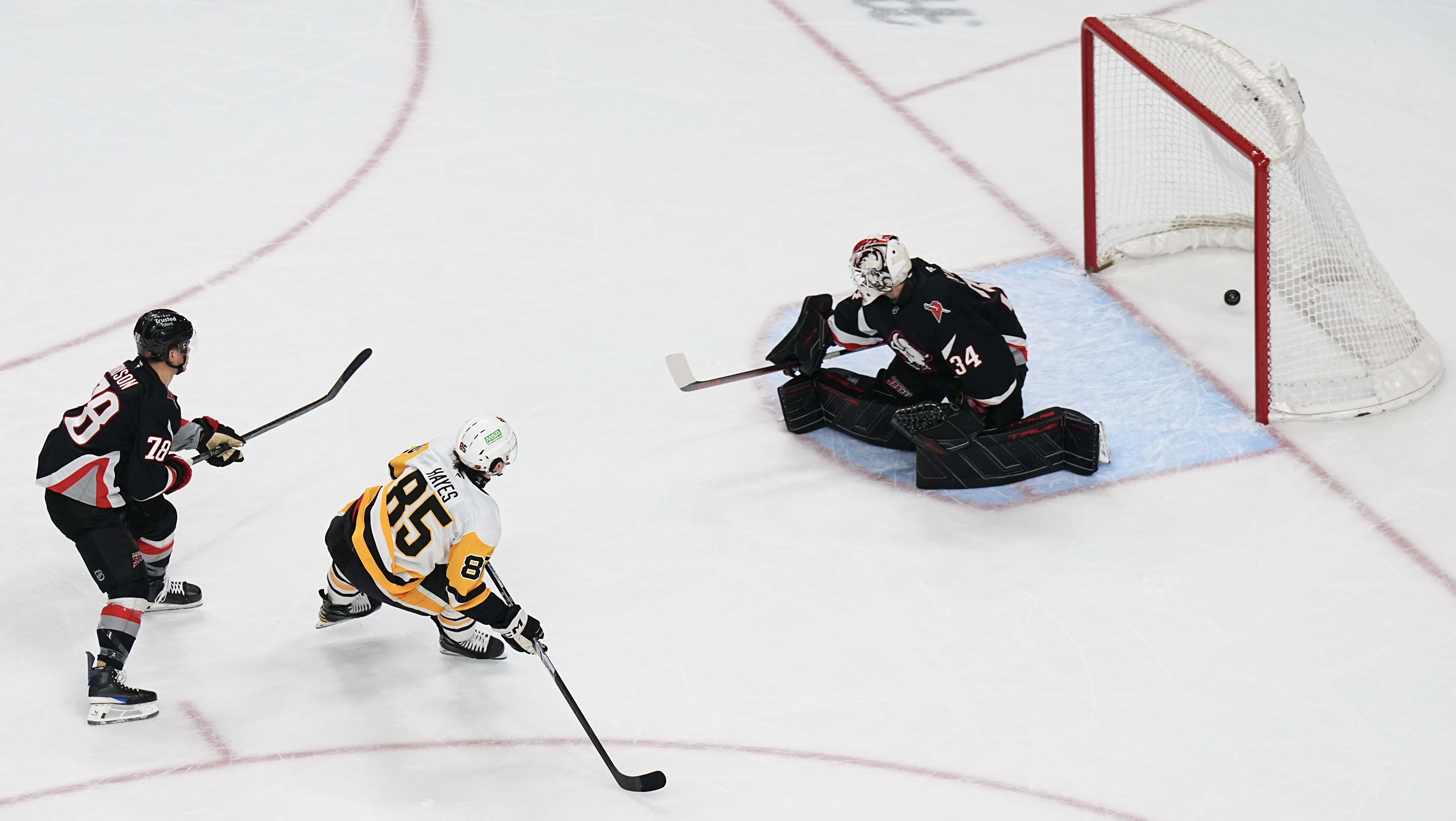 Not going to lie here: It's been a couple hours since the Penguins carved up the Sabres, 5-2, tonight here at KeyBank Center on Hayes' historic outburst in becoming the seventh player in the NHL's 107-year history to score more than once in the first period of his debut, the third in franchise history to score twice in the full debut along with Robbie Brown in 1987 and Jake Guentzel in 2016 ... and I'm still shaking my head as I was when witnessing both sequences.