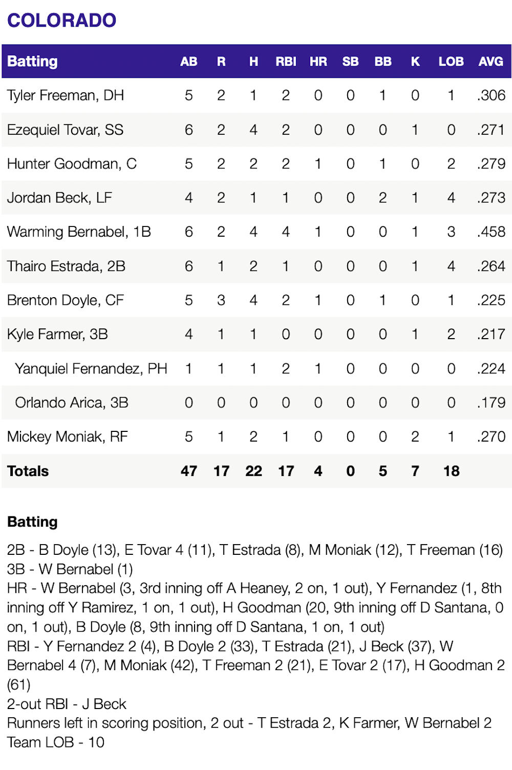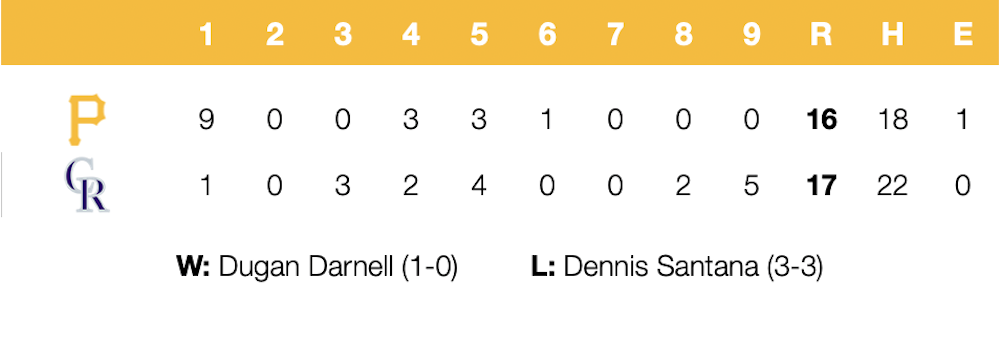 Rockies 17, Pirates 16: Two nine-run leads blown!