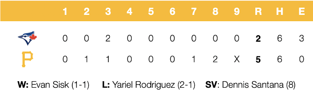 Pirates 5, Blue Jays 2: A stolen win without a swing