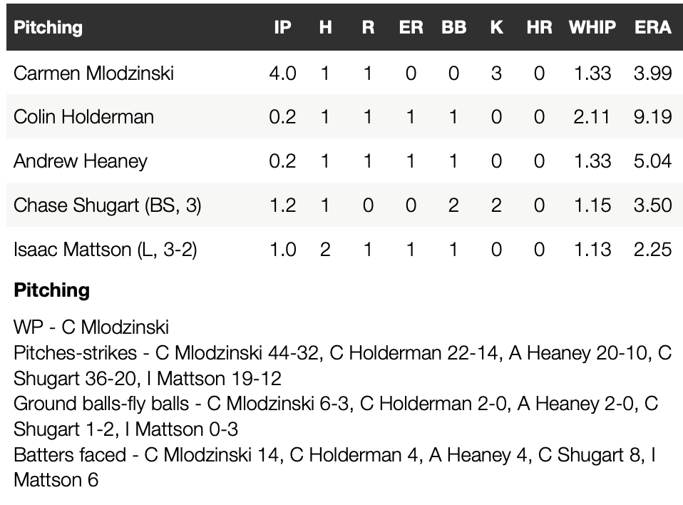 "Just the mentality of going right after guys,” Mlodzinski said. “I can honestly say there were a few balls I got a little lucky with, with the wind blowing in. That changed the outing a little bit. But ultimately no walks is going to give me the best chance to be effective and efficient."
