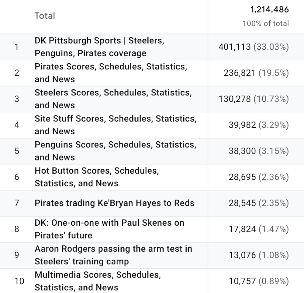 Those are page views. What's at the top are our home page, followed by our various feeds, followed by individual files on the Ke'Bryan Hayes trade and my one-on-one talk with Paul Skenes.