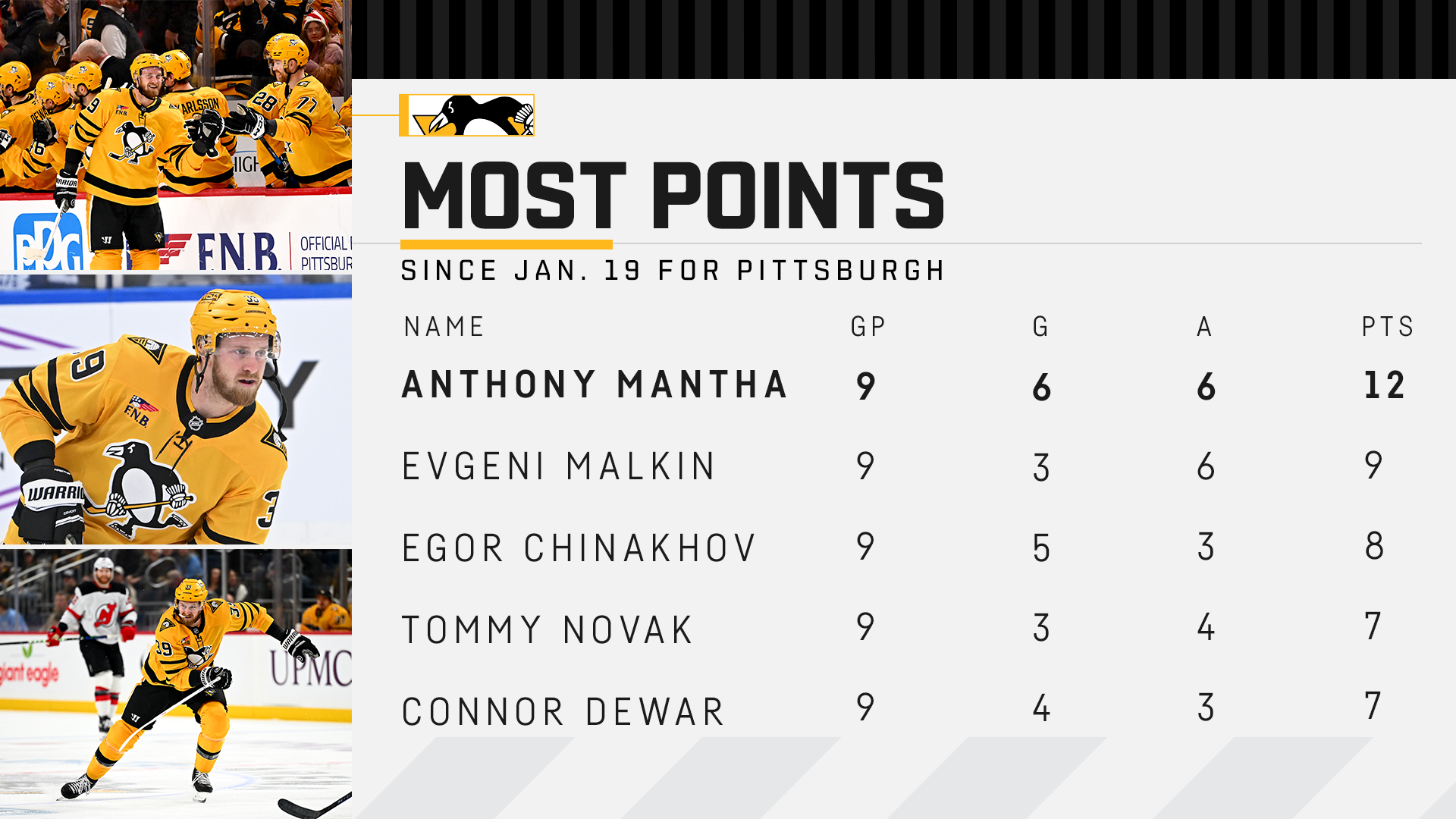 • Tonight begins what I legit hope will be my every-single-game-home-and-road coverage of the Penguins the rest of the way, with the NHL season resuming against the Devils -- 7:08 p.m., PPG Paints Arena -- amid their pursuit of a place in the Stanley Cup playoffs.