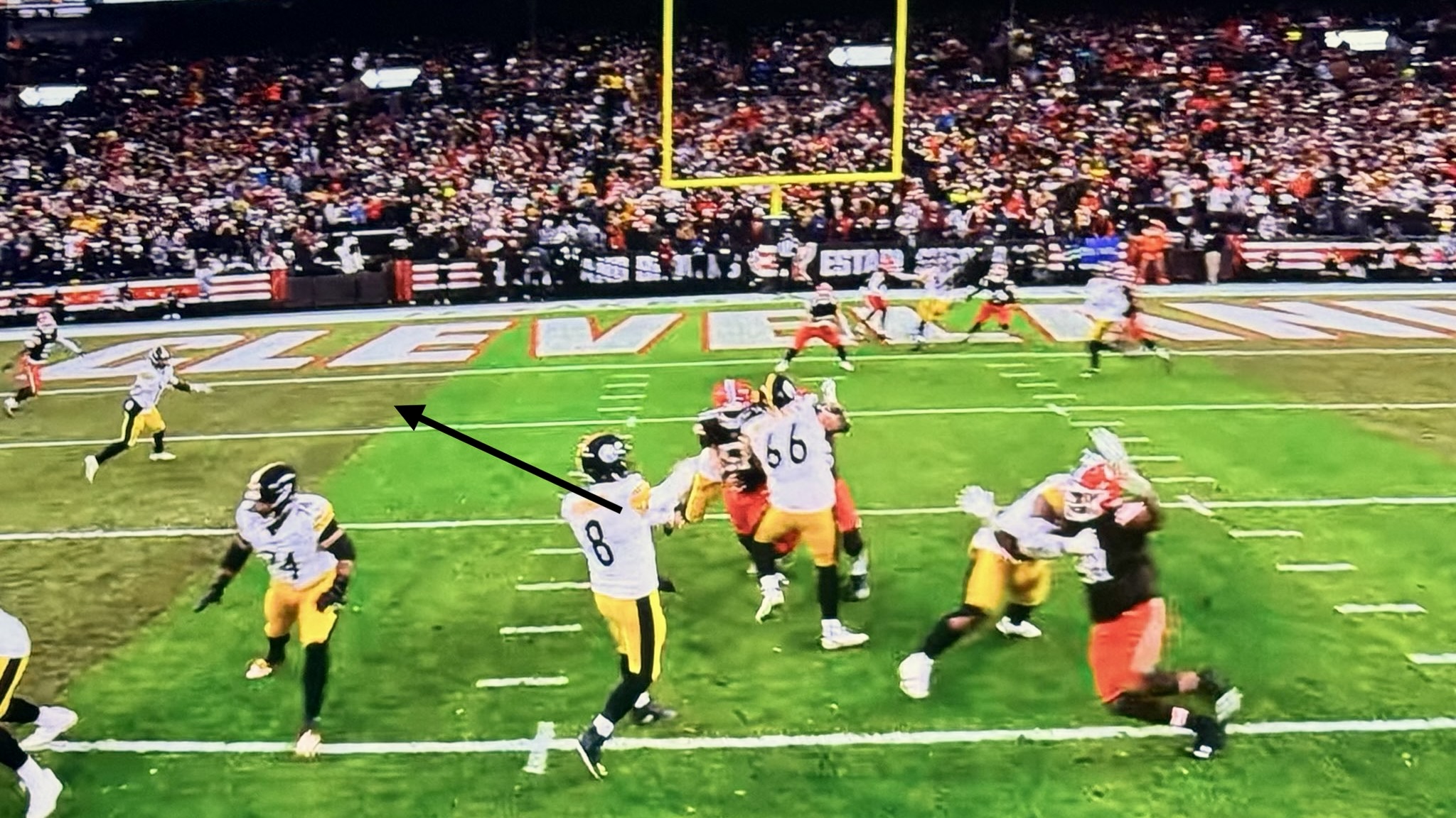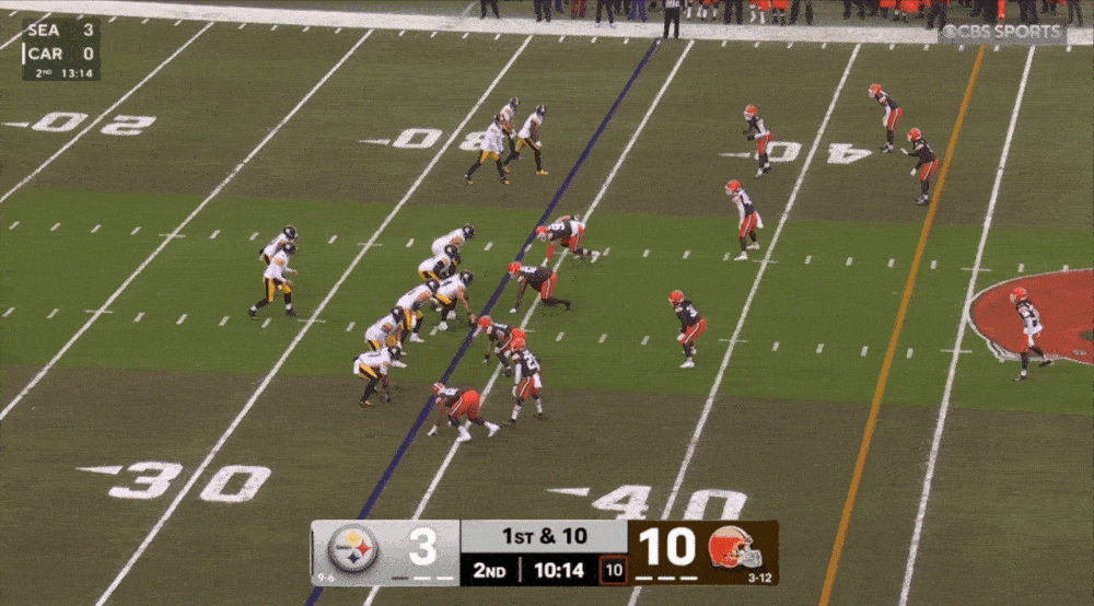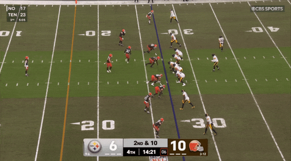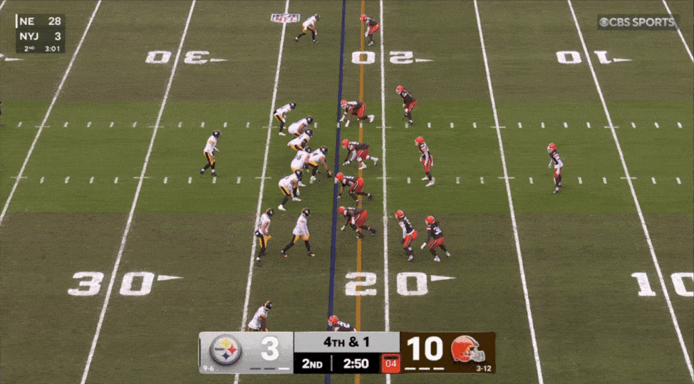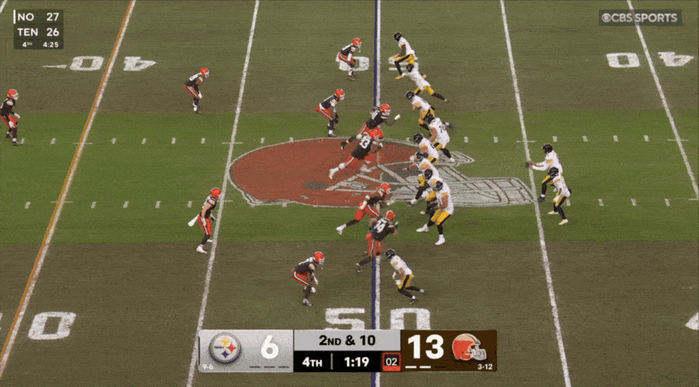 Crazy how Cleveland had all those orange helmets in the area, and Rodgers and Pat Freiermuth still beat them all, allowing the Steelers one last chance to tie.