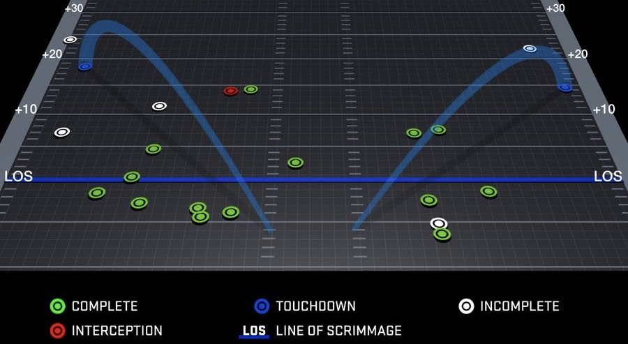 Both downfield and high enough for all these big receiving targets to do their thing more often.