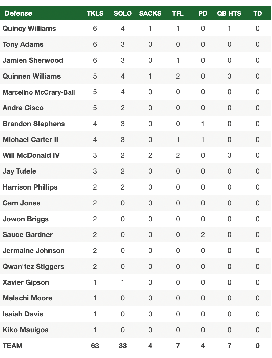 • Team statistics