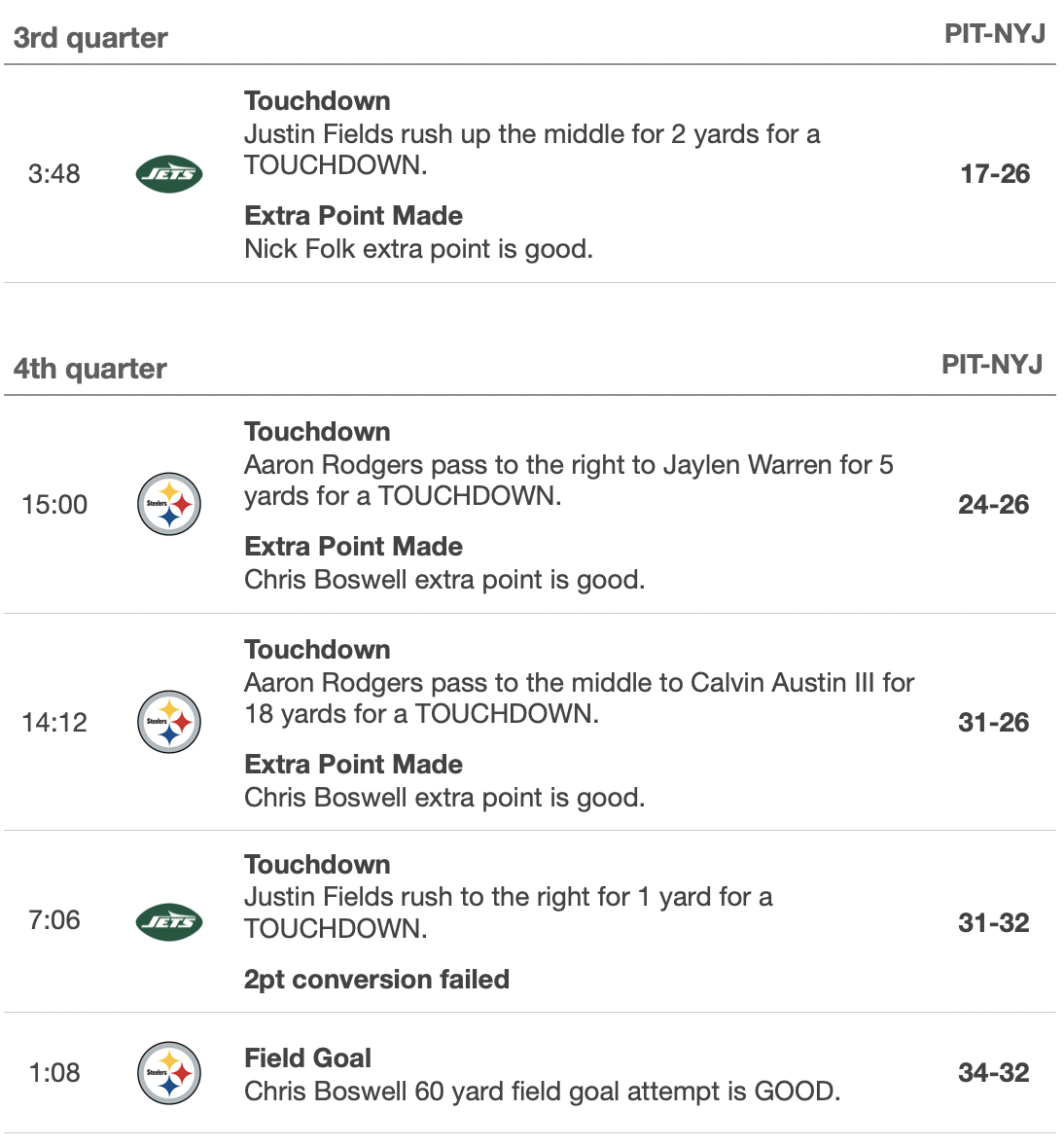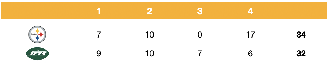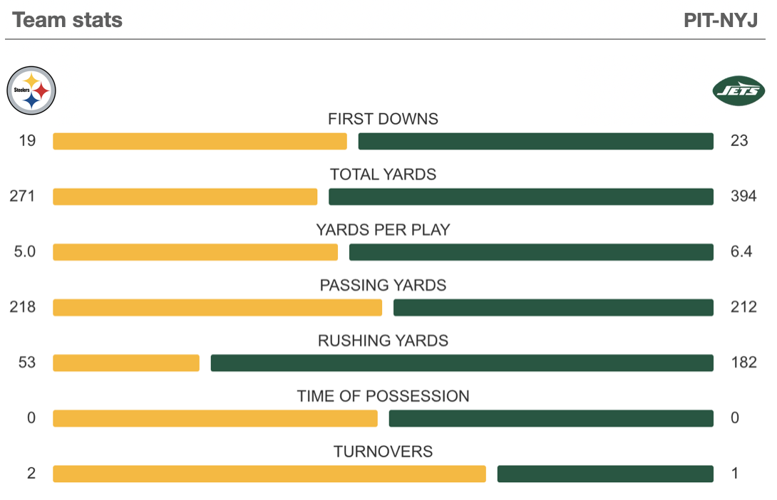 Everything everyone could want related to the Steelers' 34-32 victory over the Jets today at MetLife Stadium, including all that Chris Halicke and I have from here: