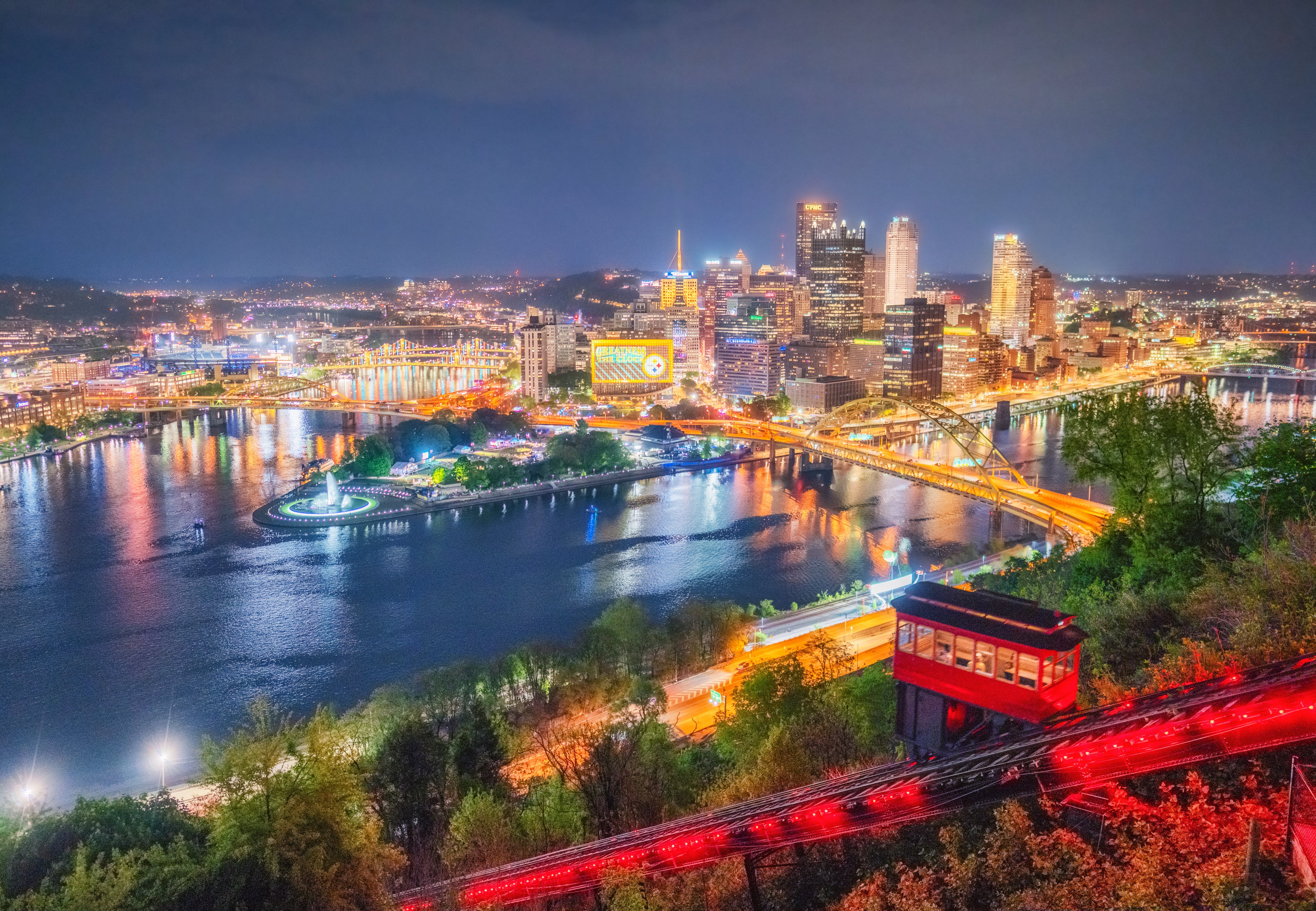 Dave DiCello, the legendary local photographer and a friend shot that gem just above late Friday night, and it features the giant screen that's being draped across the width of the Wyndham, adorned by colorful images.